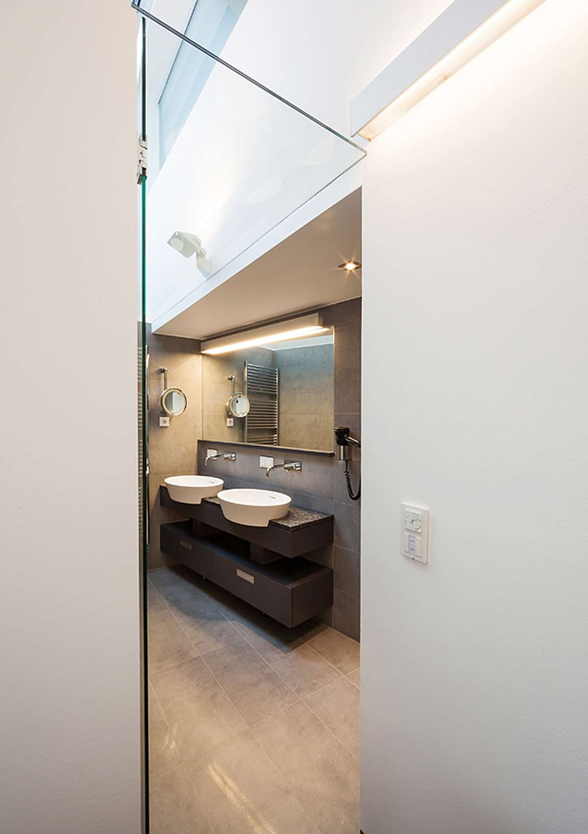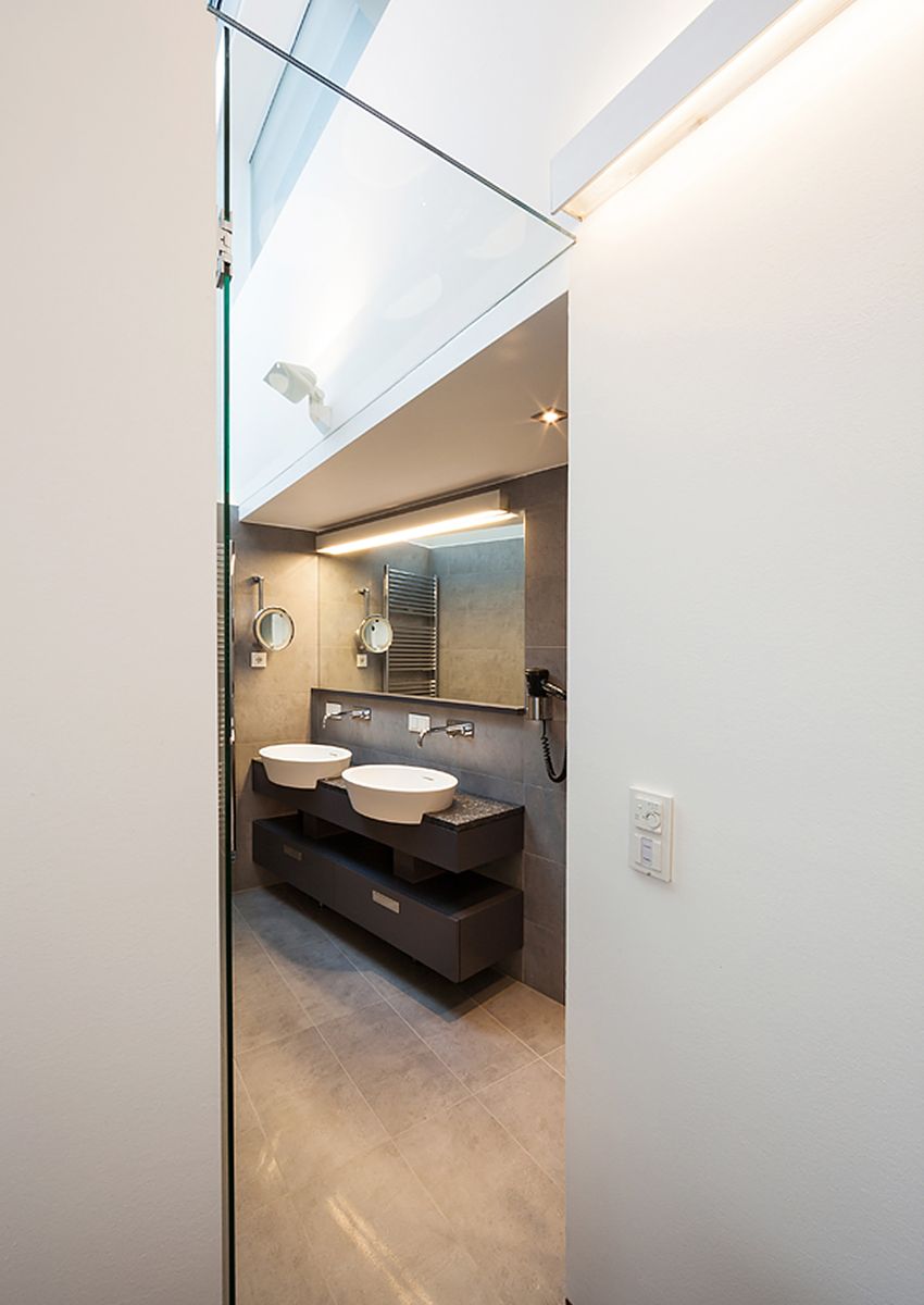 Installation of a new, small, fine bathroom oasis in one of the many rooms of an attic apartment in the Goethegasse in Vienna.