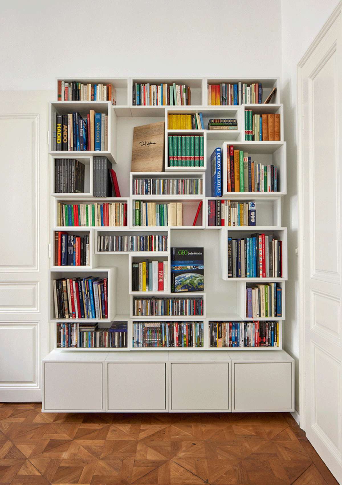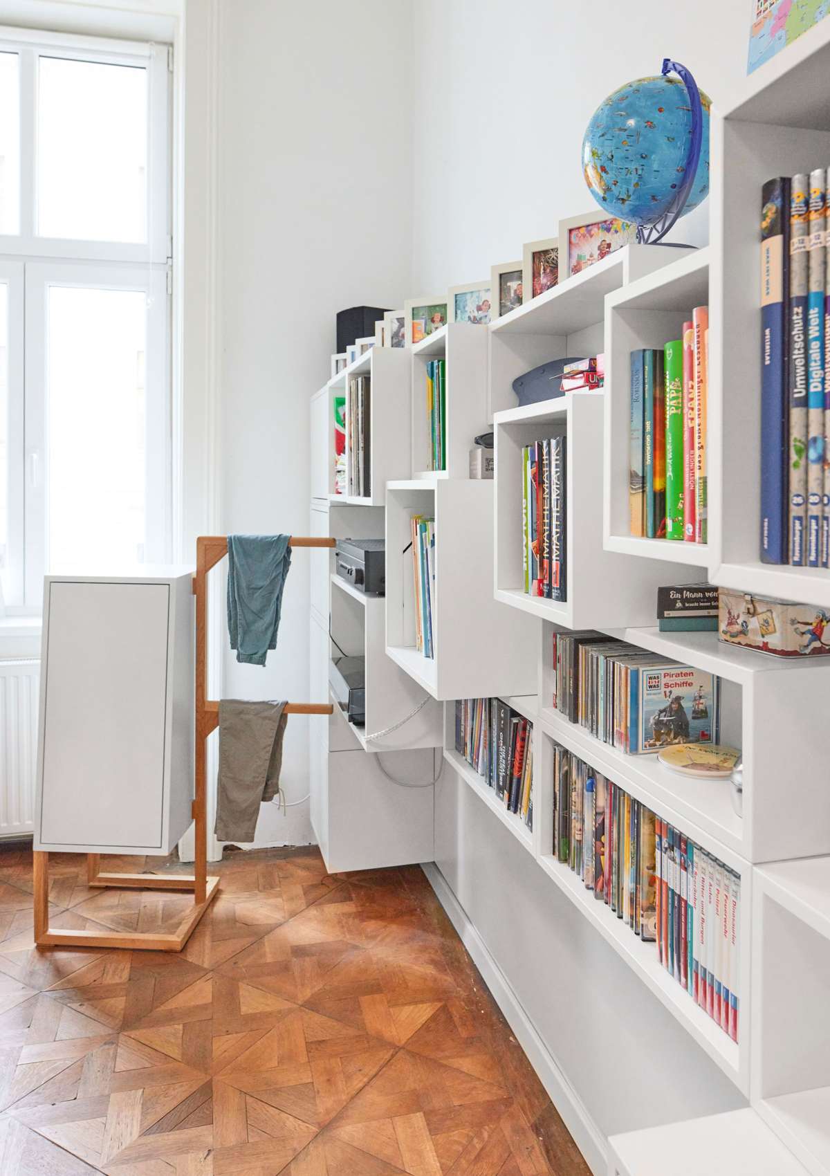 ob groß, klein, dick, dünn, lang, hoch, ob Prosa, Roman, Krimi, Bildband, Fachliteratur, alles findet im Hängestapel seinen zugeschnittenen und zugewiesenen individuellen Platz.