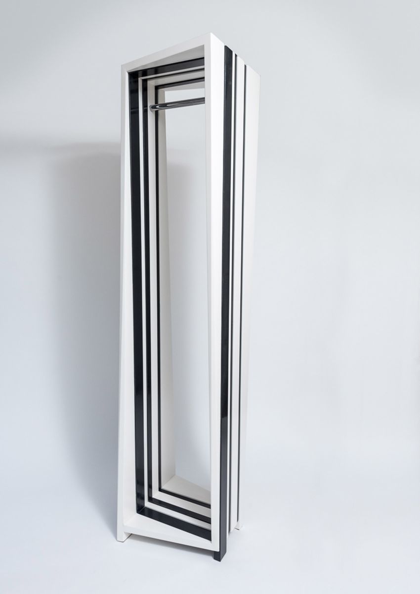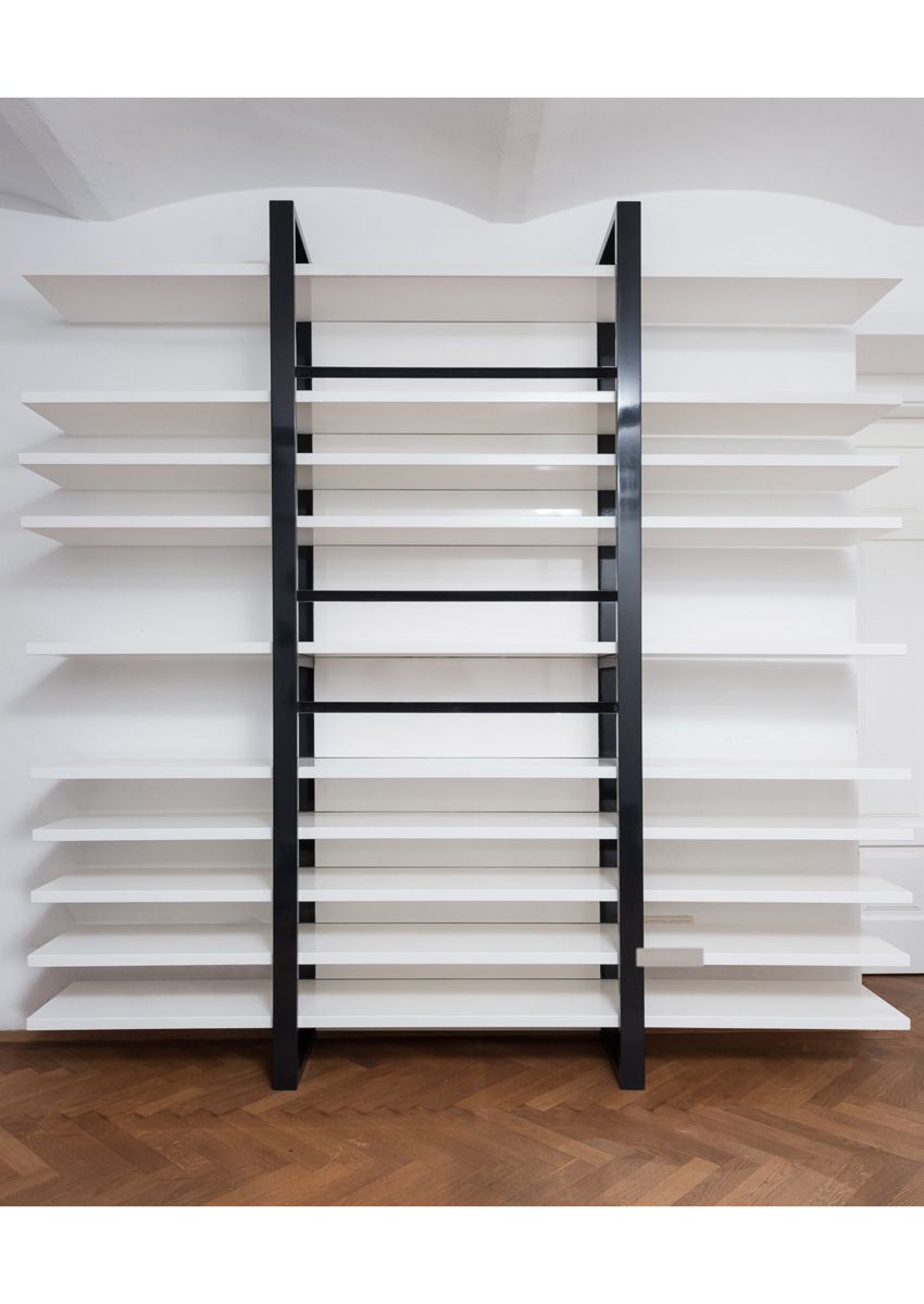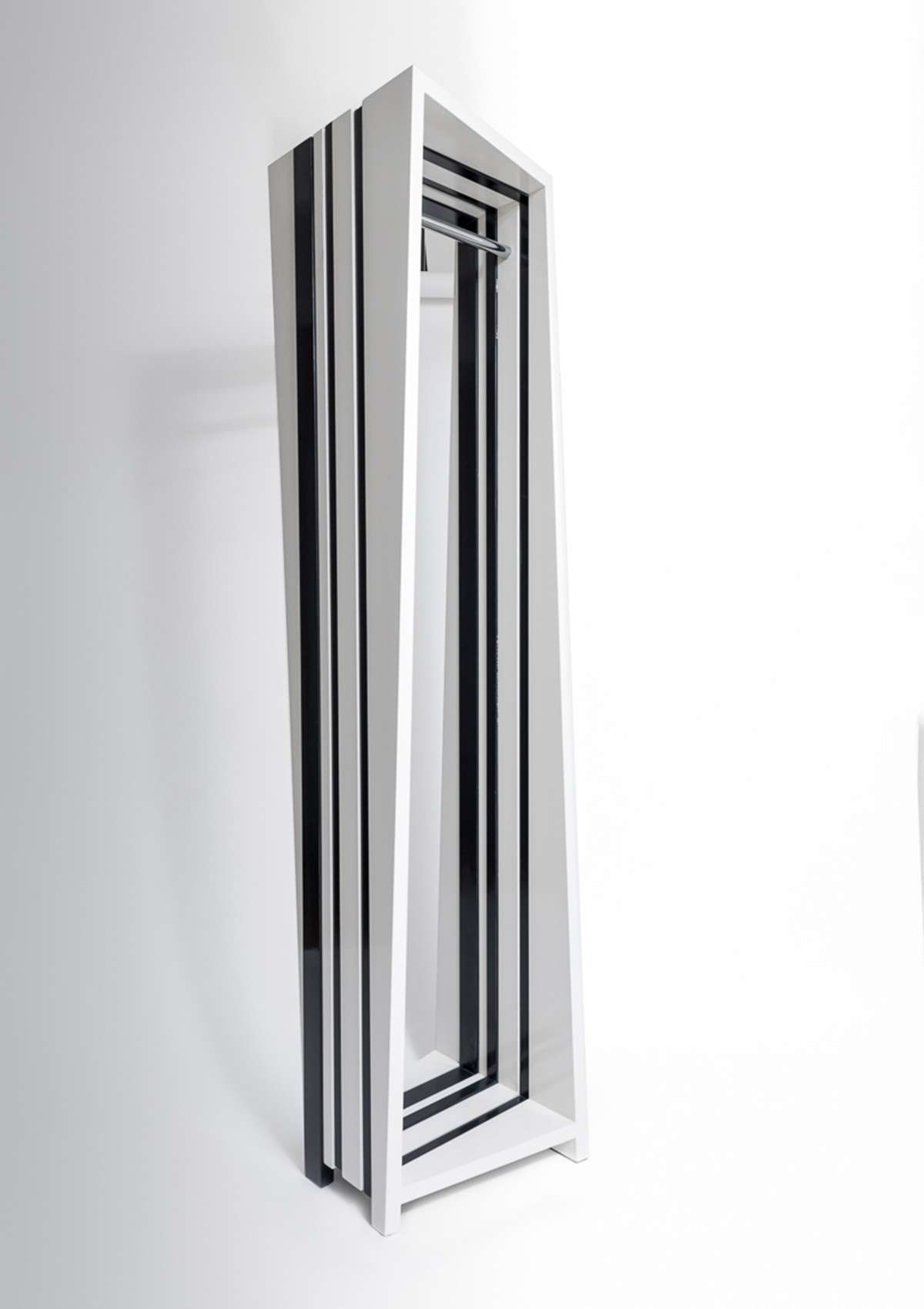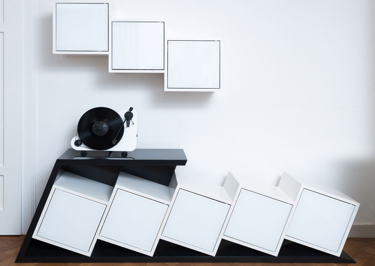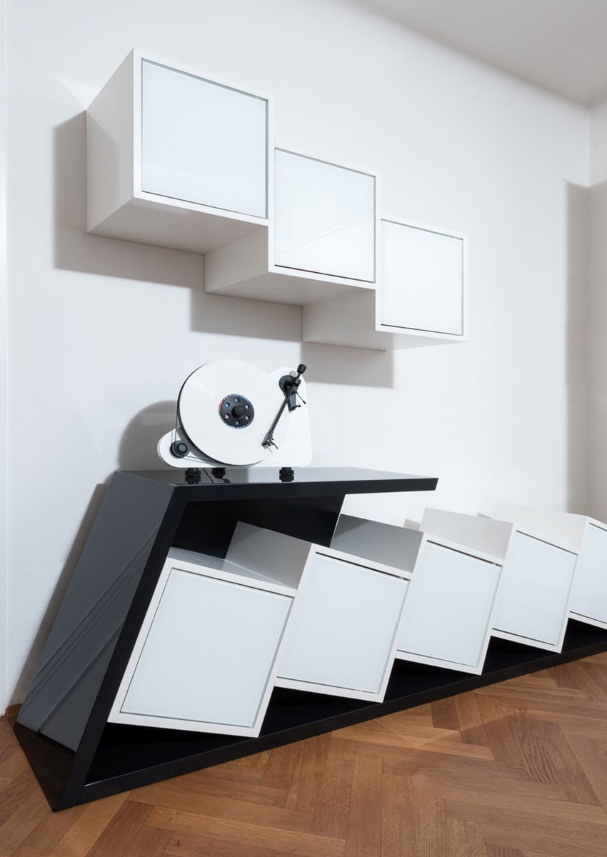 the apartment, with a size of 35m², is permeated with a strong accent of white-black and thus entangled in a play of light and shadow.