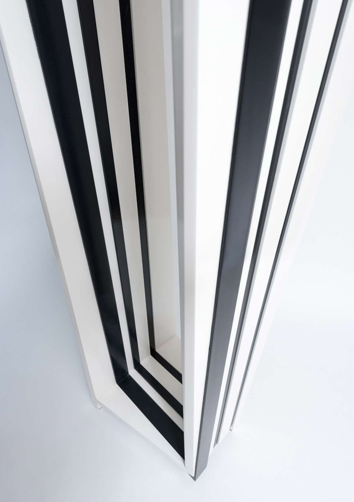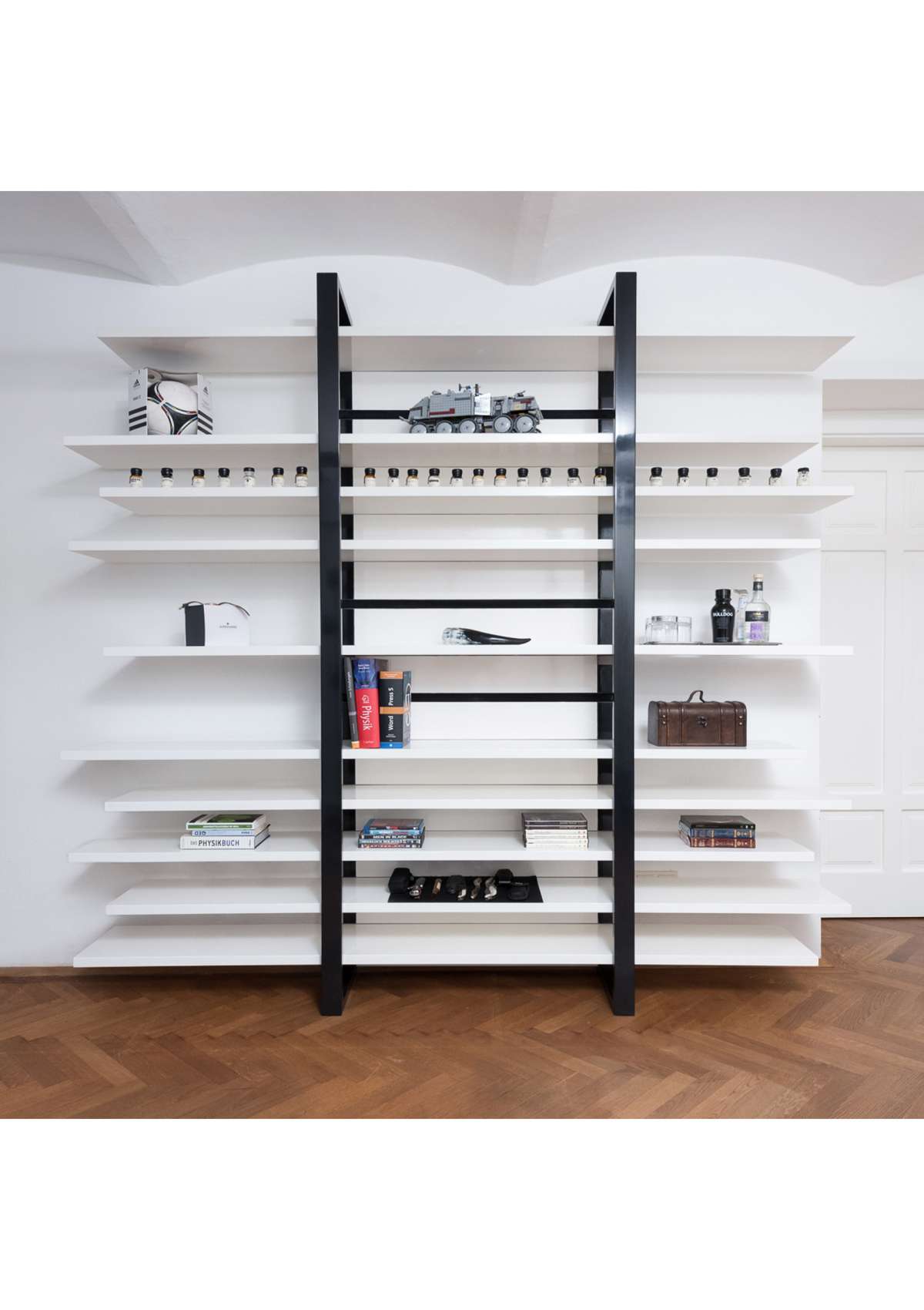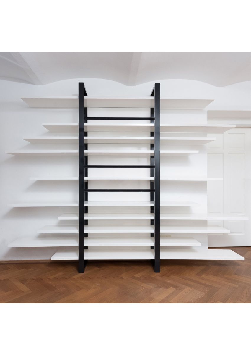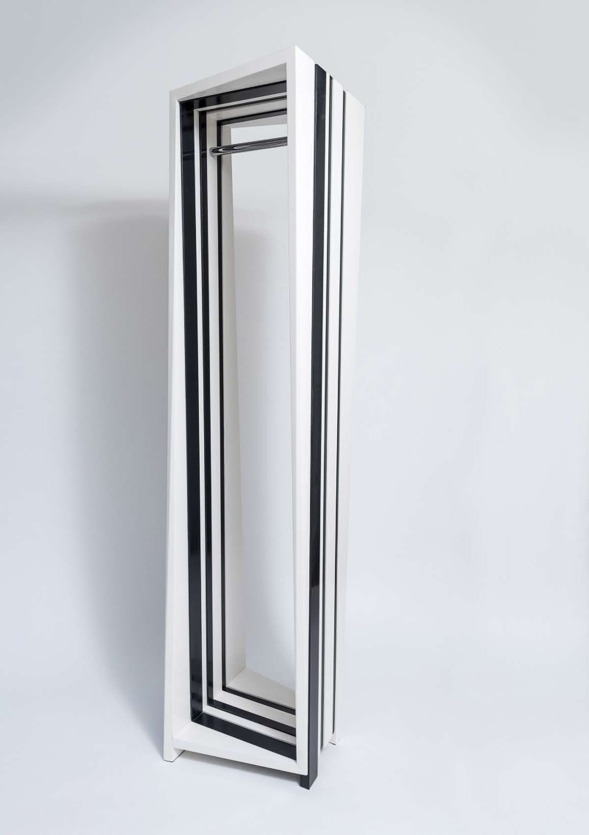 the apartment, with a size of 35m², is permeated with a strong accent of white-black and thus entangled in a play of light and shadow.
