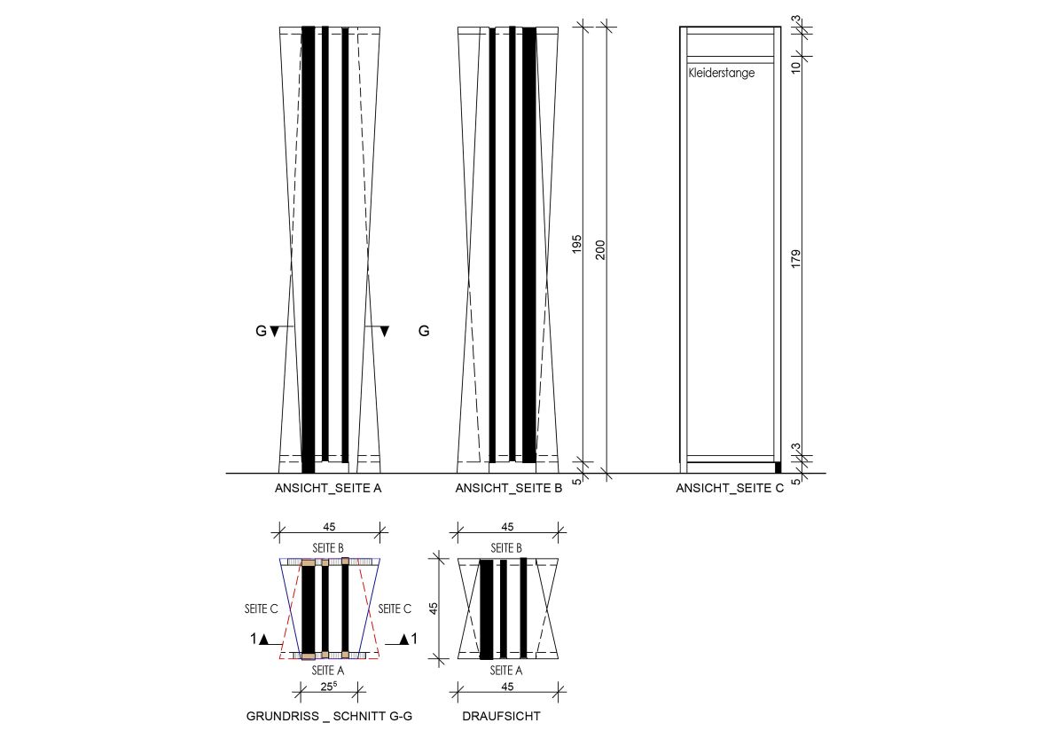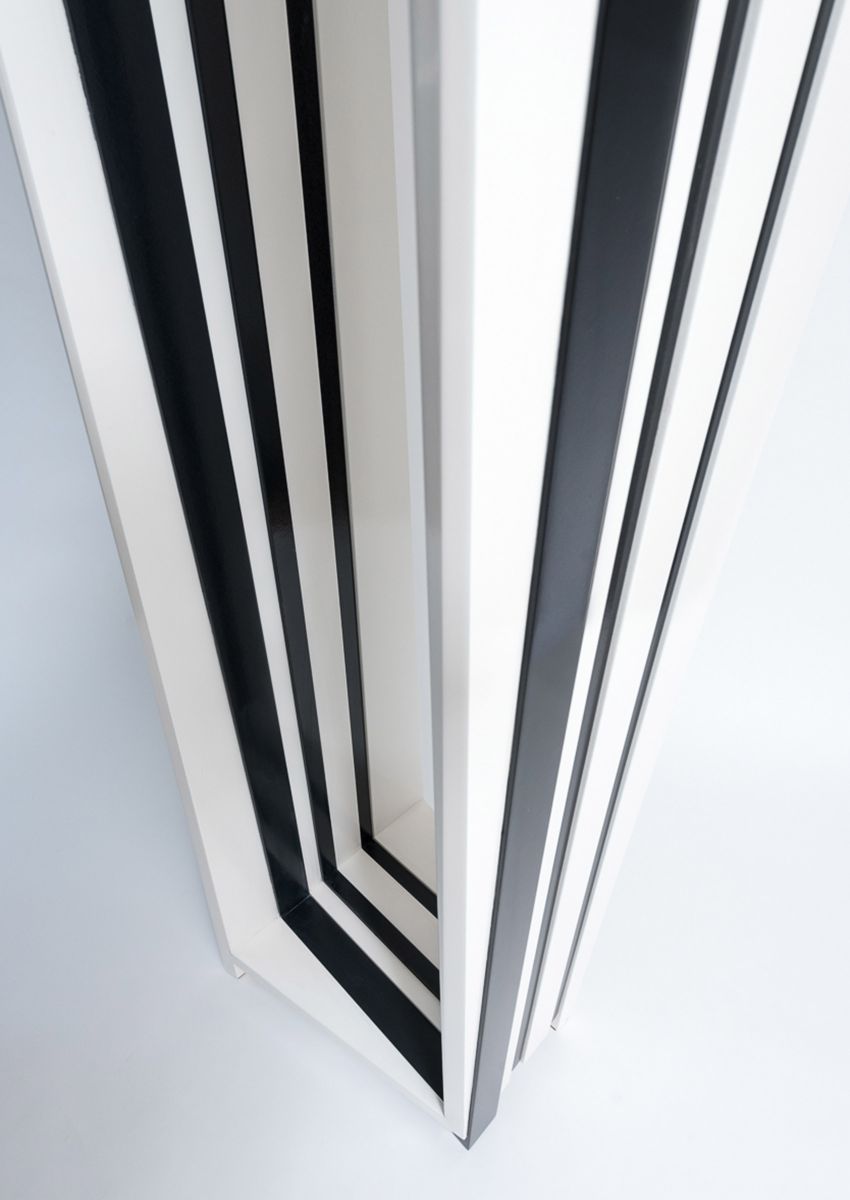 das Apartement, mit einer Größe von 35m², wird mit einem starken Akzent von weißschwarz durchzogen und so in ein Licht und Schattenspiel verstrickt.
